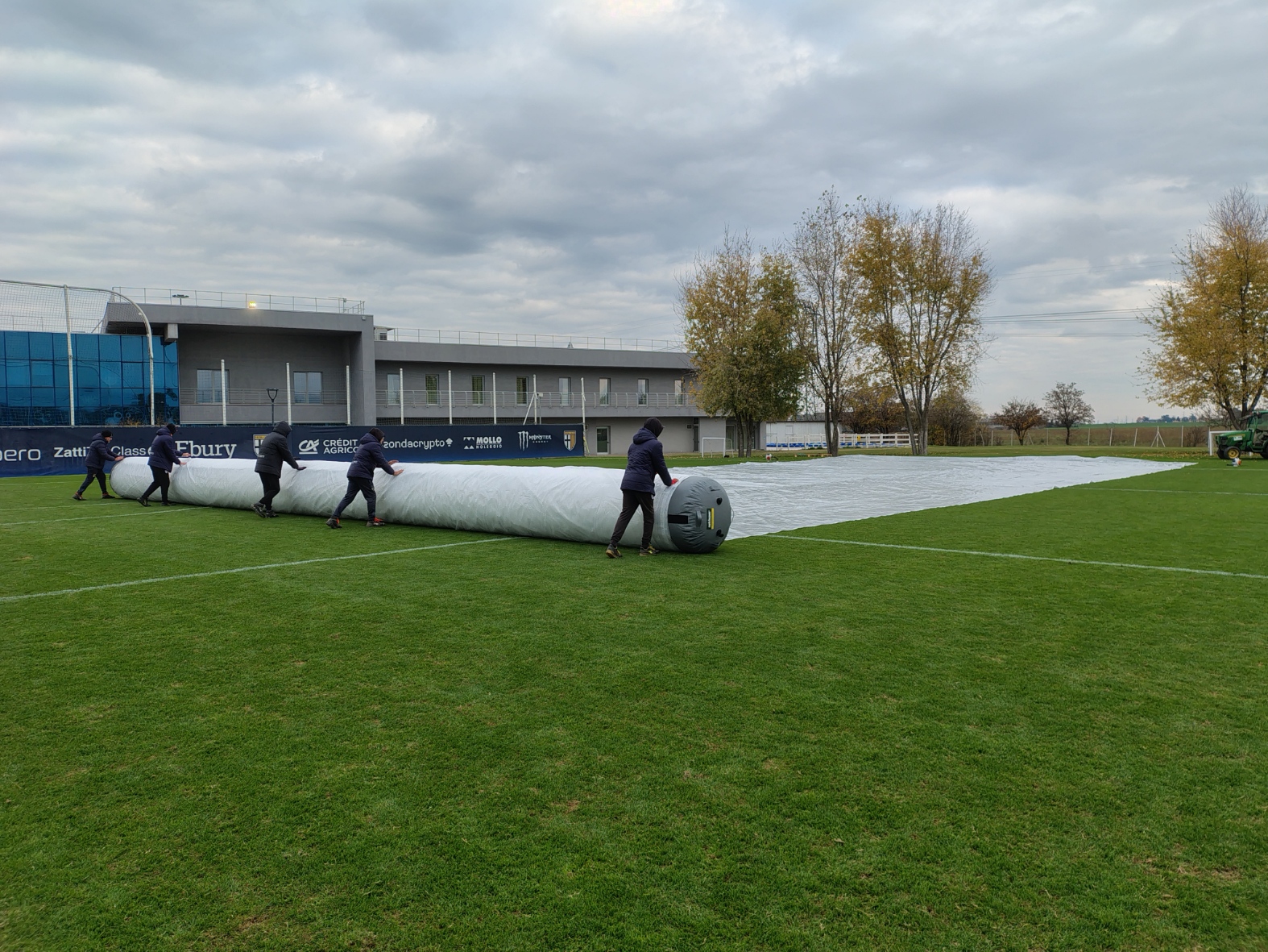 Il sistema con rulli gonfiabili Matchsaver ARS (Air Roller System) è un innovativo sistema di copertura dei campi da gioco, progettato per proteggere e preservare i campi sportivi in caso di pioggia, neve e gelo e permettere in tal modo di disputare le partite in programma o proseguire l’attività di preparazione nei campi d’allenamento. Il sistema di copertura Matchsaver ARS permette di coprire il terreno rapidamente e con poco personale grazie all’utilizzo di rulli gonfiabili per stendere speciali teli resistenti alle intemperie. I rulli posso essere utilizzati sia da linea laterale a linea laterale opposta, sia da porta a porta, in base alla disposizione del terreno di gioco e alle esigenze del Cliente. Per coprire il campo i rulli vengono spinti in avanti facendo così stendere sul terreno i teli avvolti su di essi. Per rimuovere i teli, gli addetti dovranno poi semplicemente arrotolare verso la direzione opposta i rulli, riavvolgendo i teli su di essi e lasciando così il terreno in perfette condizioni (rimuovendo previamente dai teli ancora stesi la neve o eventuali eccessive quantità di acqua). I teli di copertura Matchsaver sono stati sviluppati assieme ai migliori agronomi del settore per proporre una protezione ottimale dei campi da gioco ai più alti livelli internazionali. I teli sono composti da un polimero estremamente resistente e stabilizzato UV, con una trasparenza del 70% che permette anche un miglior effetto germinativo in caso di erba naturale. Queste proprietà germinative hanno migliorato notevolmente le condizioni del terreno di gioco di molti nostri Clienti, con esempi lampanti di campi interamente ingialliti che si sono trasformati poi in perfetti terreni di gioco. I teli di copertura Matchsaver sono stati testati per assicurare una resistenza termica tra – 35 °C e + 60 °C. Inoltre possono essere utilizzati in combinazione con sistemi di riscaldamento o soffiatori di aria calda, per migliorare ulteriormente le condizioni del terreno in presenza di basse temperature. In caso di sistemi di riscaldamento installati sotto la superficie di gioco, l’effetto serra che si viene a creare consente di ridurre l’utilizzo dell’impianto di riscaldamento stesso, riducendone così i costi d’impiego e le emissioni di CO2. I sistemi Matchsaver sono ampiamente riconosciuti come i sistemi di copertura più efficaci al mondo. Tutti i prodotti Matchsaver sono fabbricati nel Regno Unito dalla ATP Ltd e vengono installati da esperti ingegneri. Numerosi stadi e centri sportivi Italiani ed Europei si sono dotati dell’innovativo sistema di copertura con rulli gonfiabili Matchsaver: Torino Fc, Como 1907, Us Catanzaro, Stadio Nereo Rocco (Trieste), Stadio Druso (Bolzano), Atletico Madrid, Manchester United, Leicester, e moltissimi altri. |